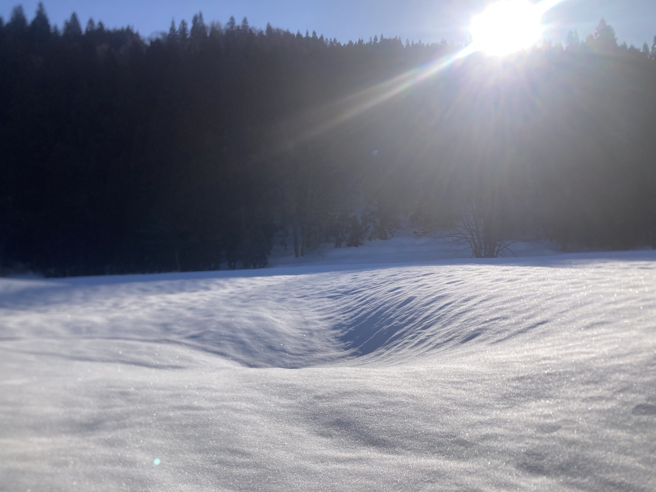 日中は快晴ですが朝晩は冷え込み、今が絶好のしみわたり(凍みわたり)日和です。