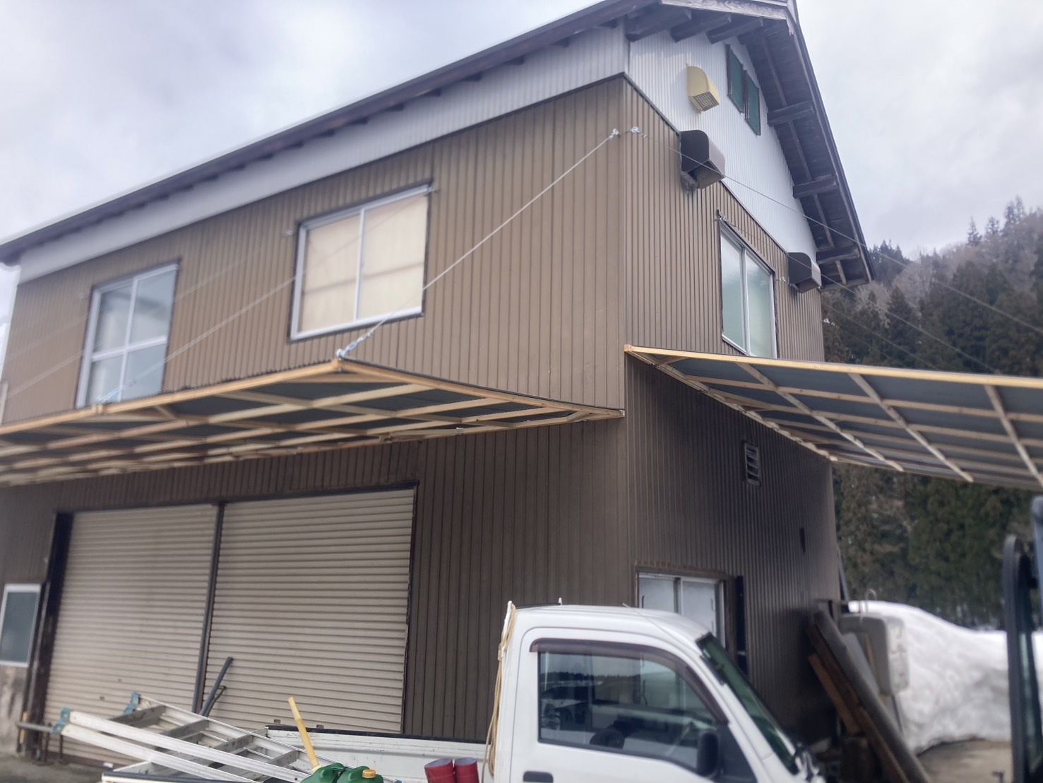 弊社起業からの長年の懸案事項でありました、米作業所の下屋がついに完成しました‼